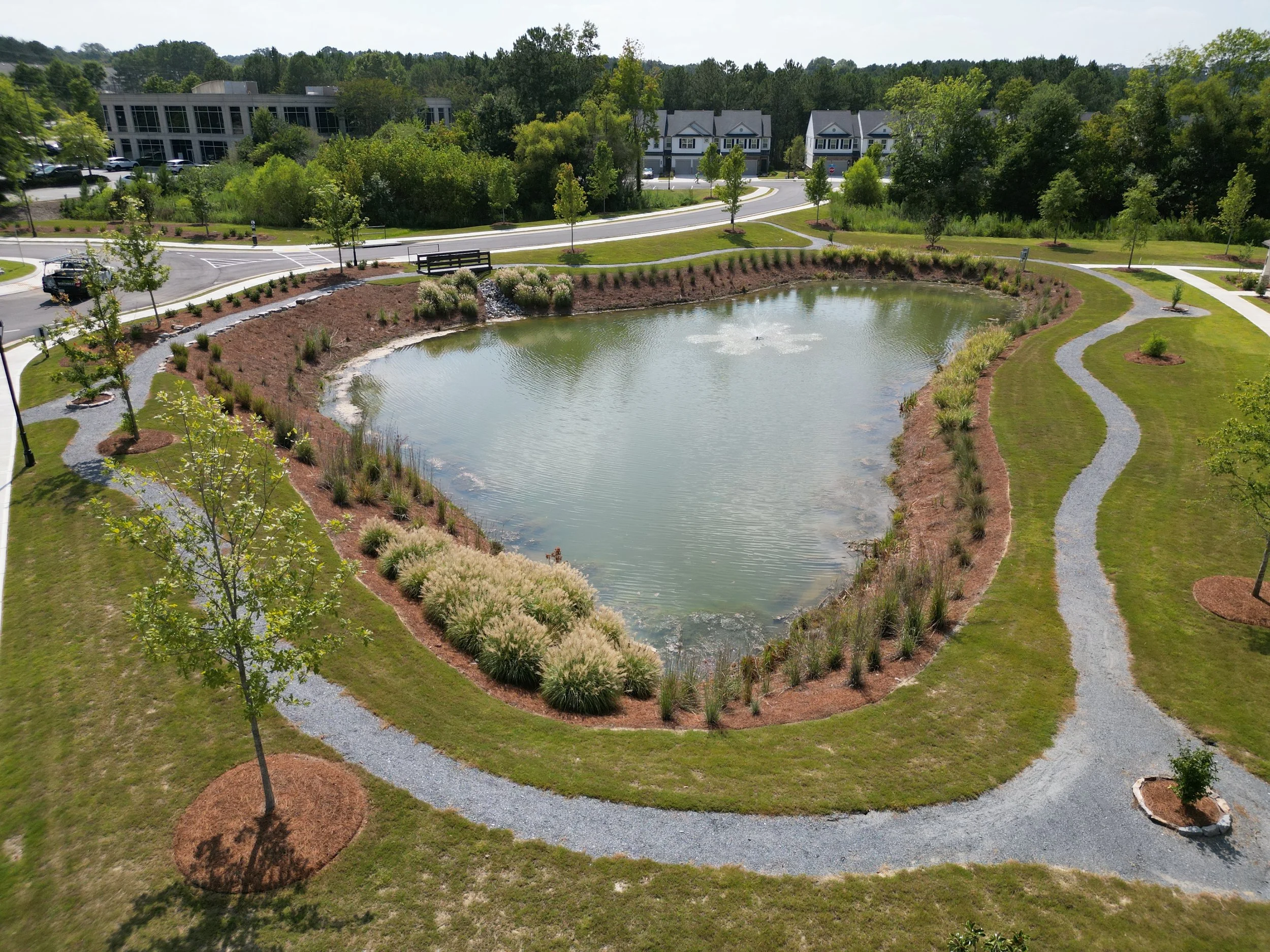 At Newberry, an active adult community, New Life Landscaping created a striking first impression with a beautiful waterfall feature and pond at the grand entrance. Additional enhancements—including pocket parks and landscaped traffic circles—add to the community’s peaceful, well-designed environment.