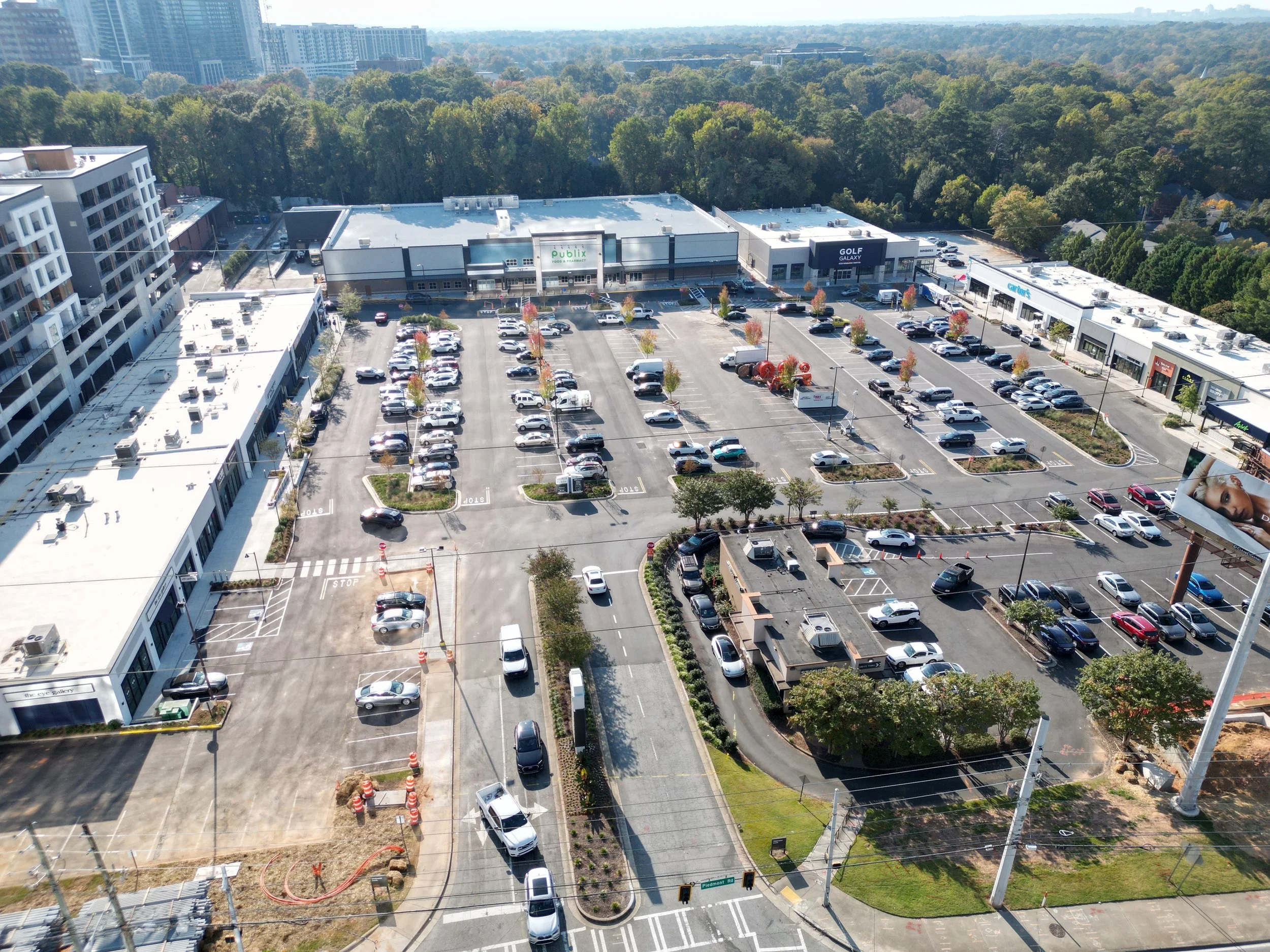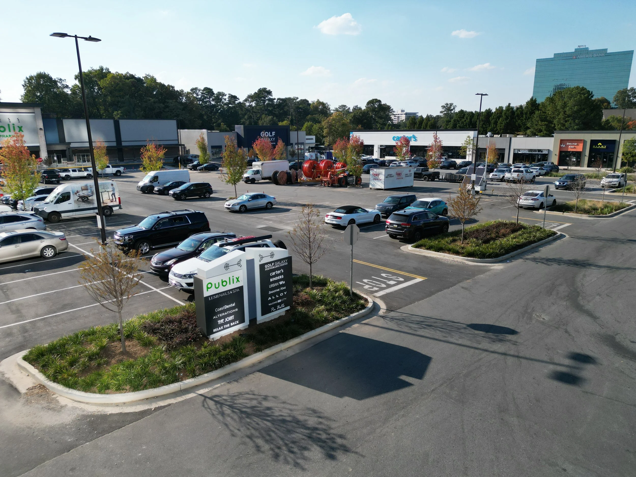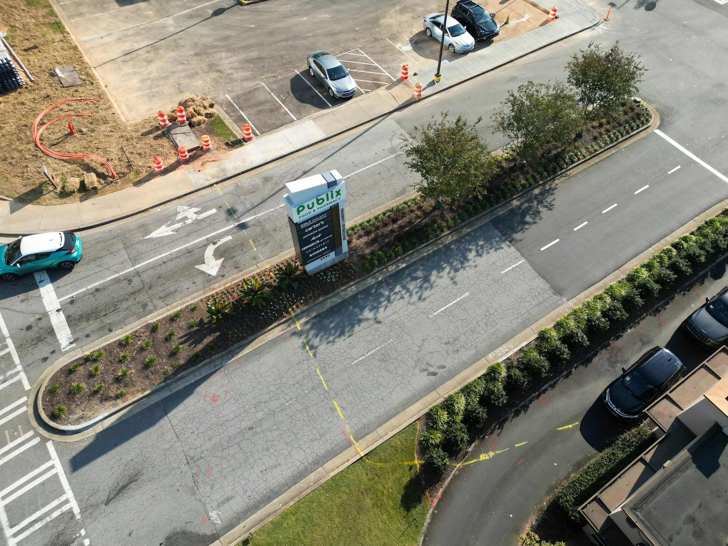 New Life Landscaping delivered a turnkey exterior construction package for Buckhead Landing Shopping Center, elevating the property with vibrant landscaping, hardscaping, and site enhancements. The scope included concrete storefronts, drainage, sidewalks, a permeable paver parking lot, parking lot trees, planters, and bio-pond islands. Site furnishings such as string light poles, hand railings, and Accoya wood benches complete the look. The result is a cohesive, inviting atmosphere that enhances the shopping experience for visitors and adds value for businesses.