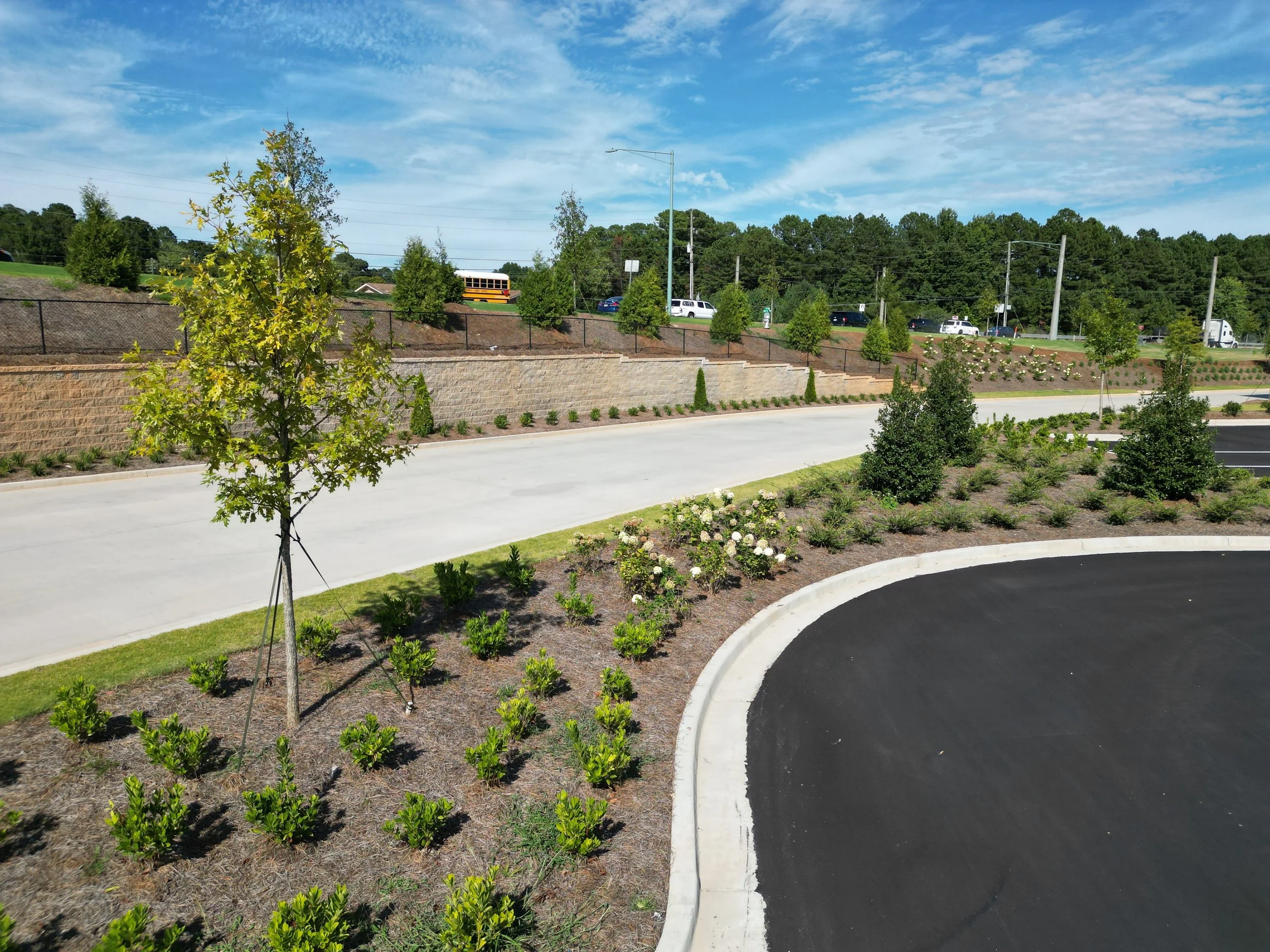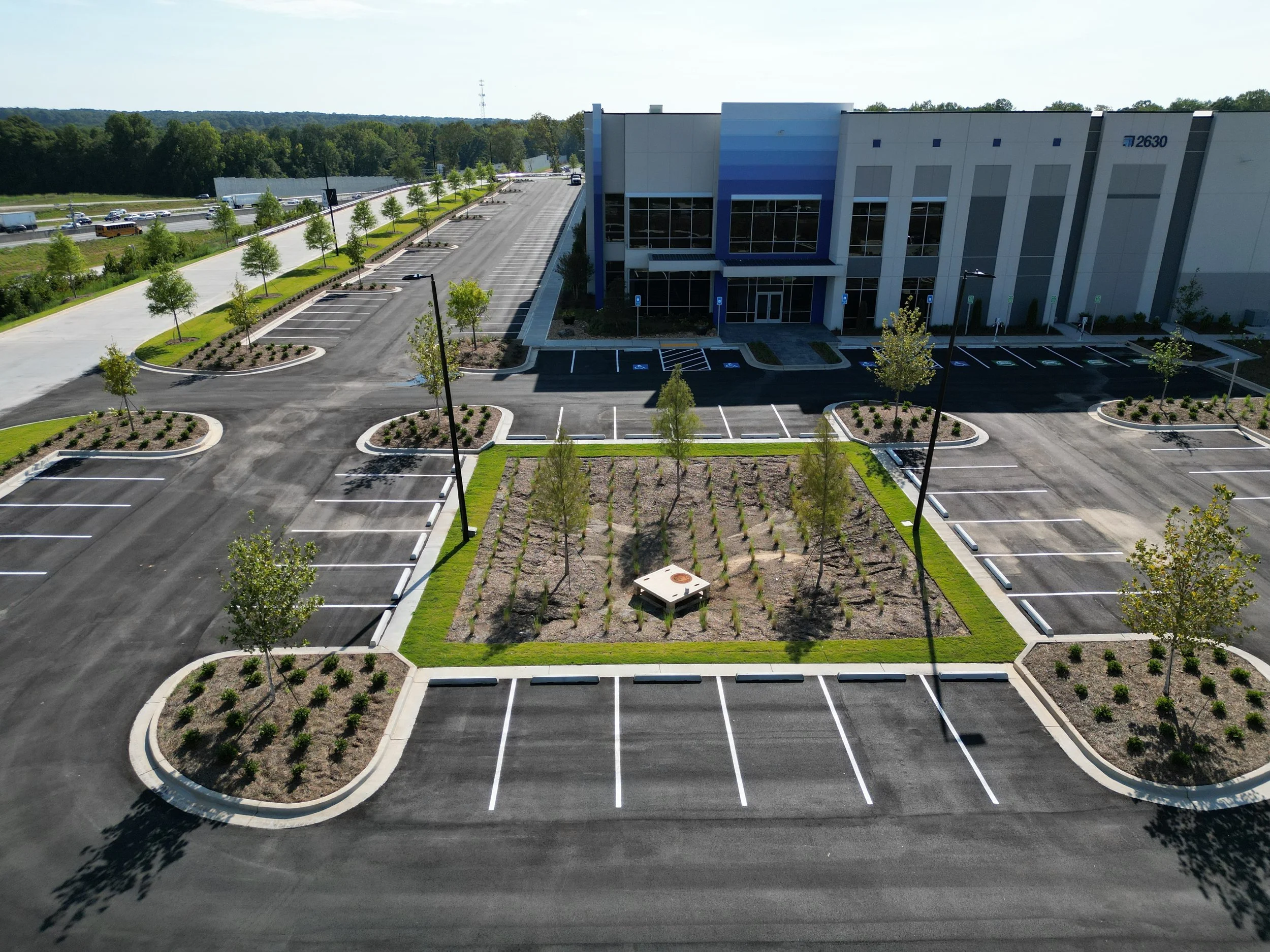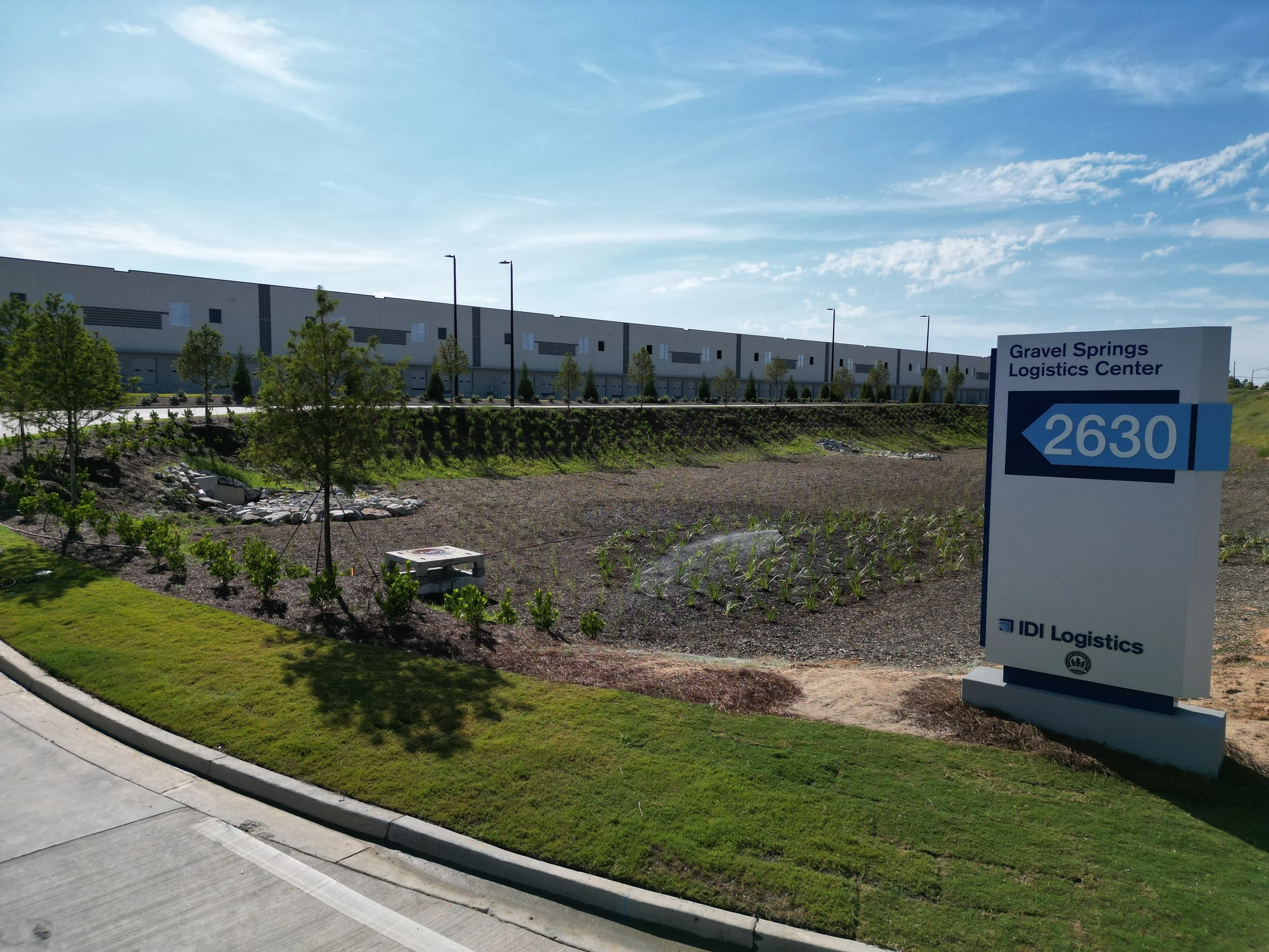 New Life Landscaping provided full landscape and irrigation services for the newly constructed Gravel Springs Logistic Center—a 1 million square foot distribution facility. The project included extensive landscaping around the building entrance and throughout the perimeter of the large parking area, creating a clean, professional appearance that enhances the site's functionality and curb appeal.
